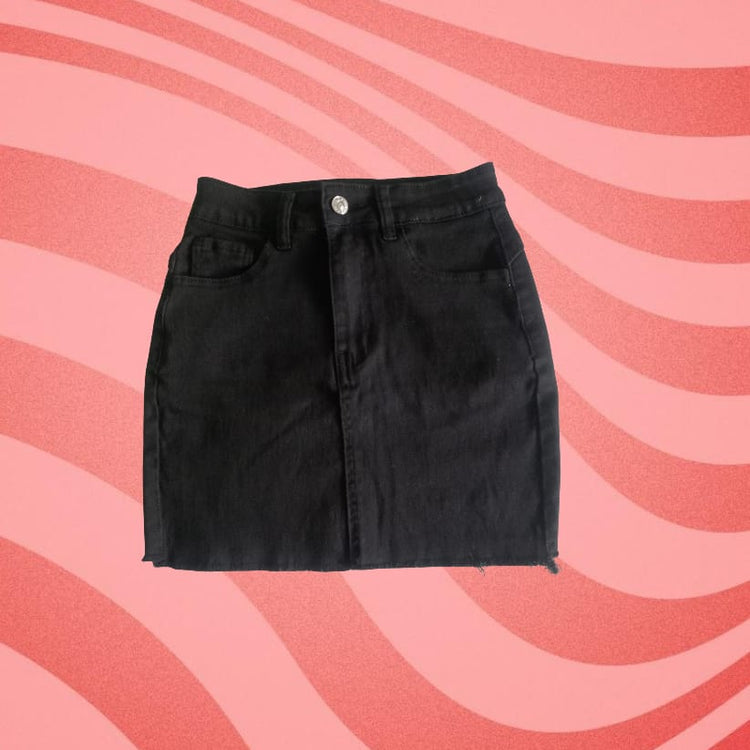 gonna 100% denim di cotone; chiusura con bottone e zip frontale, taglio corto e dritto. Uno stile casual e facile da abbinare